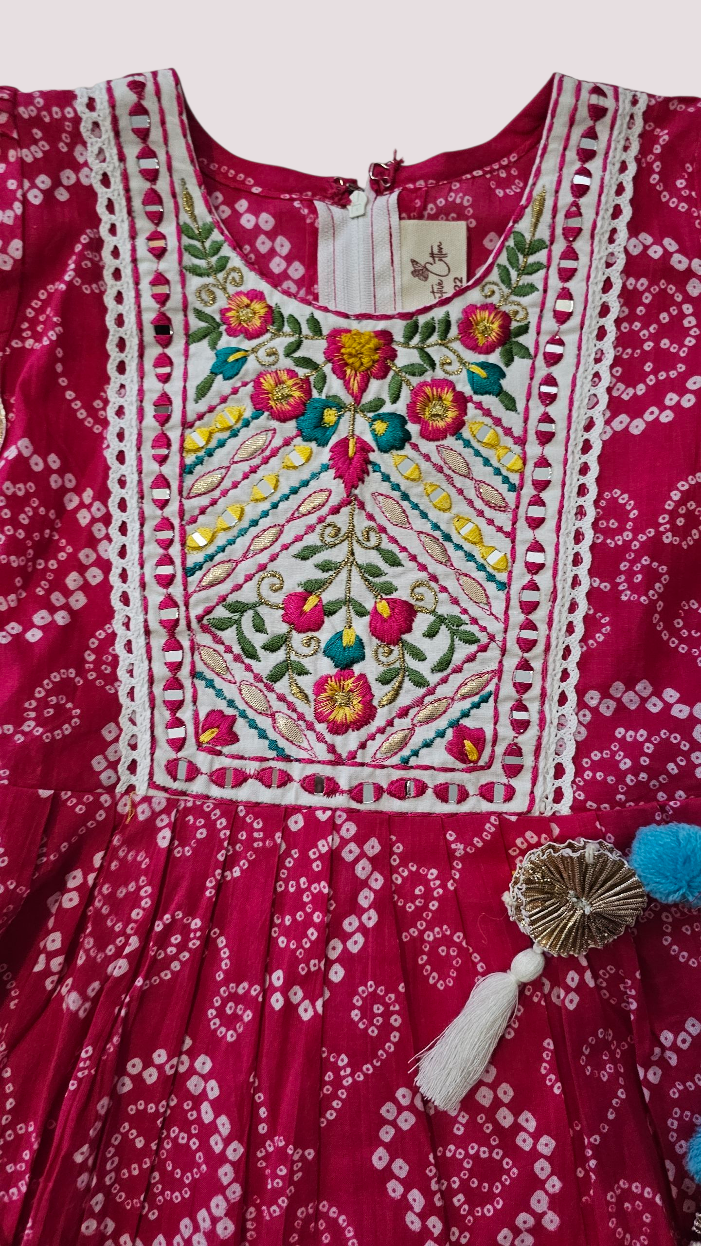 ✔ Color: Vibrant pink with white Bandhani motifs and contrast embroidery
